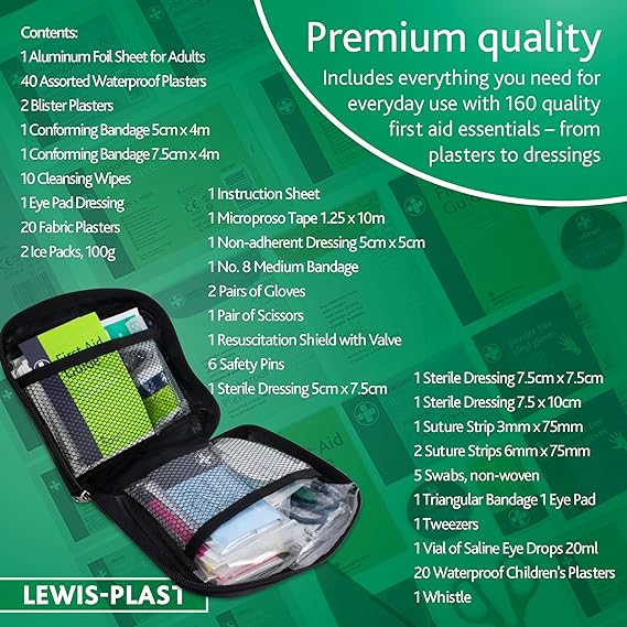 Lewis-Plast First Aid Kit Bag - 160 Piece Kit (NEW)